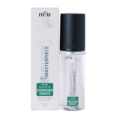 Purity Design Masterpiece's Diamond Drops is a high-gloss serum that controls frizz, flyaways, and split ends while providing an amazing shine. Enriched with the innovative OZONE+ COMPLEX TM, high-performance polymers are mixed in a single active complex that wraps around the hair fiber, protecting it from hot tools and atmospheric stresses like humidity, smog, and UV rays.