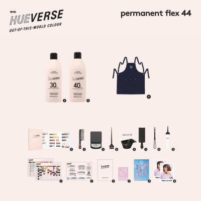 Designed for salons introducing hueverse permanent colour alongside the Bottle Blonde lightening system, this intro delivers a balanced mix of colour, lighteners, developers, and essential support tools for everyday and blonde services.